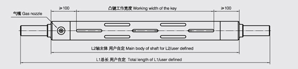 用戶在定制氣脹軸時需指明氣脹軸的類型、外形尺寸、氣嘴位置,標注軸頭上重要尺寸的公差。如軸向進氣,則氣嘴安裝時軸頭外徑需要大于35mm。所有氣脹軸都需出具正式圖紙,雙方確認后方可生產。