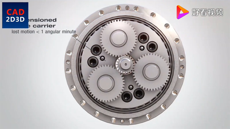 3個行星齒輪,同輸入齒輪驅(qū)動,行星齒輪帶動曲柄軸旋轉(zhuǎn),曲柄帶動RV齒輪朝相反方向旋轉(zhuǎn)。
