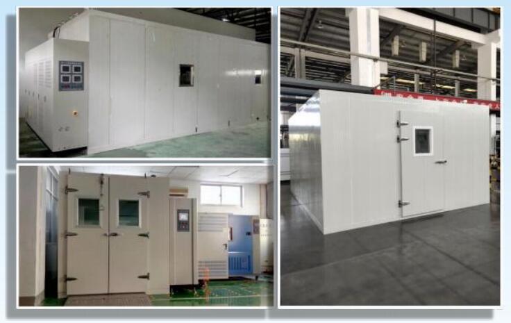 步入式試驗室 : 具備試驗空間可按照需要隨意調整,試驗室內擱架、照明、承重等可進行按需配置,同時具備試驗空間大、操作人員可以進入試驗室進行操作等特點, 為批量、大型零件、半成品、成品提供了高溫、高低溫及濕度環境測試的條件。 產品參照國家標準 GB10589《低溫試驗箱技術條件》、GB11158《高溫試驗箱技術條 件》、GB10586《濕熱試驗箱技術條件》。(具體性能參數以技術協議為準。) 試驗室箱體由可拆卸、方便搬遷的庫板拼裝而成。庫板內外面可以采用不銹鋼、 彩鋼板進行隨意搭配,庫板保溫采用了先進的高強度聚氨酯發泡工藝,聚氨酯內添加有阻燃劑,并按照需要預埋有加強結構,具備強度高,正對性強,外觀美觀,使用安全的特點。驗室室內采用科學的空氣強制性驅動循環方式,通過特有的渦輪集 風口及可調節風向的導流條,實現室內優異的溫、濕度均勻性。室內承重加強、樣 品推行軌道、防潮照明、多角度觀察裝置等可通過整體式設計完美呈現。步入式試驗室系列產品,控制系統采用原裝進口超大屏幕真彩液晶觸摸屏控制器,全中文菜單,人機對話友好,程序設定操作簡單,儀表反應迅速。控制器支持USB2.0 接口, 通過專用軟件,實現電腦對數據的管理,并支持 USB 打印機,鼠標,U 盤,可代替溫濕度記錄儀,具備 300 天數據記錄功能。