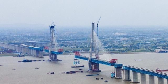 5月21日,由中鐵大橋局承建的滬通(上海—南通)長江大橋28號主塔墩,開始進行第14輪大節段鋼梁的吊裝作業。此次吊裝的輔助跨鋼梁是滬通長江大橋主橋架設中體型最大、重量最重的一個雙節段,重量接近1800噸。吊裝完成后隨即進行高栓施擰和焊接作業,預計本月底可實現主橋首個鋼梁合龍口的勝利“會師”。 20日下午,由南通制造的重達1800噸Q500鋼梁,從位于如皋的制造基地出廠,滾裝上船,被運往世界最大跨度公鐵兩用斜拉橋——滬通長江大橋主橋鋼梁段的施工現場,用于21日上午開始的鋼梁吊裝作業。這是滬通長江大橋主橋施工中體型最大、重量最重的一個雙節段。 該梁段材質為Q500橋梁用鋼,外形尺寸為長36米、寬28米、高16米。滬通長江大橋主航道橋采用雙塔五跨斜拉橋結構,分為一個主跨、兩個邊跨、兩個輔助跨,因此施工中共有五次合龍。當天運輸的鋼梁,將用于北主墩與北輔助墩之間的合龍,這也是五次合龍中的第一次。 滬通長江大橋將架設鋼梁164個節段,分別由中鐵工業集團下屬的中鐵山橋工程公司和中鐵九橋工程公司在南通基地生產制造完成。 滬通長江大橋是我國沿海鐵路大通道中滬通鐵路段的跨長江控制性工程,兩岸連接江蘇省南通市和張家港市,大橋全長11072米。 ![]() 滬通鐵路 滬通鐵路北起寧啟鐵路的南通站,途徑通州、海門、常熟、太倉進入上海市,進入上海后西線(一期)經嘉定區接入滬寧鐵路安亭站,東線(二期)經嘉定區、寶山區,穿越黃浦江進入浦東新區,接軌于浦東鐵路I期工程四團站。全長137.3公里,是我國規劃建設的沿海鐵路的一段。