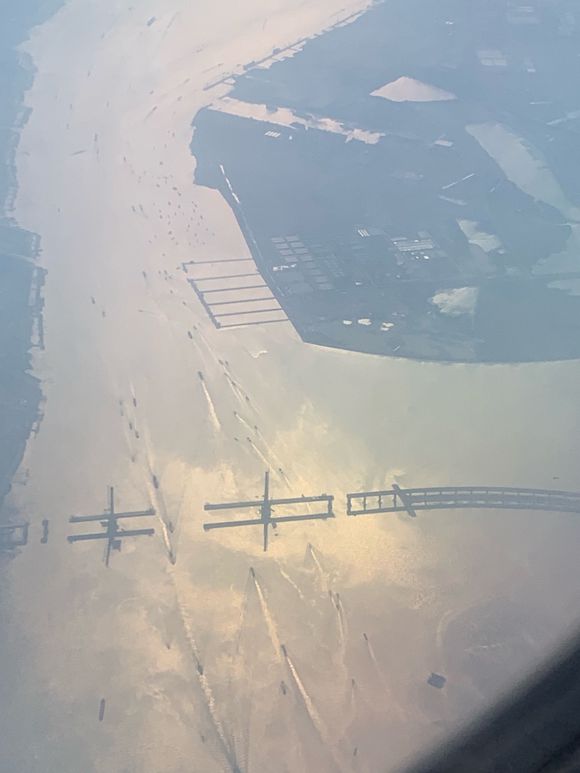 | 今天下午從虹橋起飛的飛機上,網友拍的照片來看,應該是27,28號橋墩合攏了。有圖片為證。